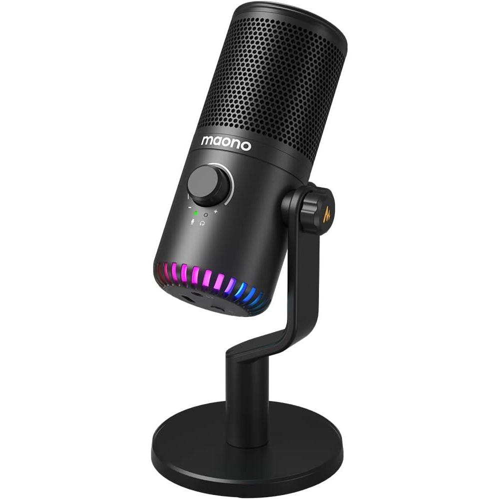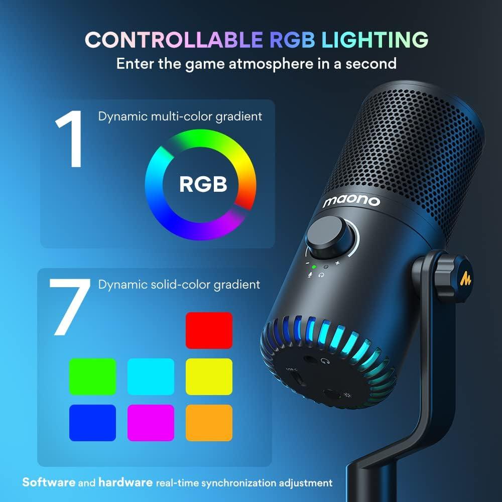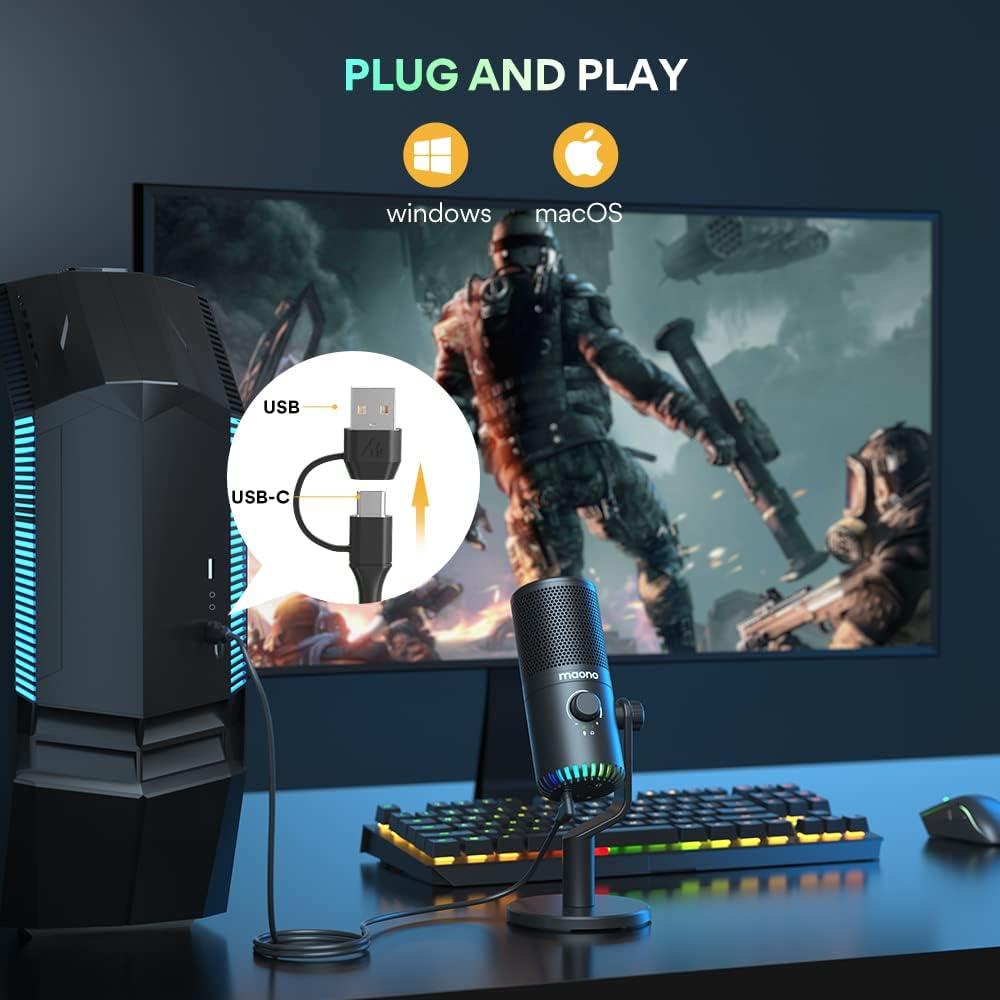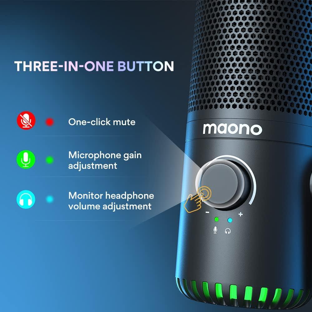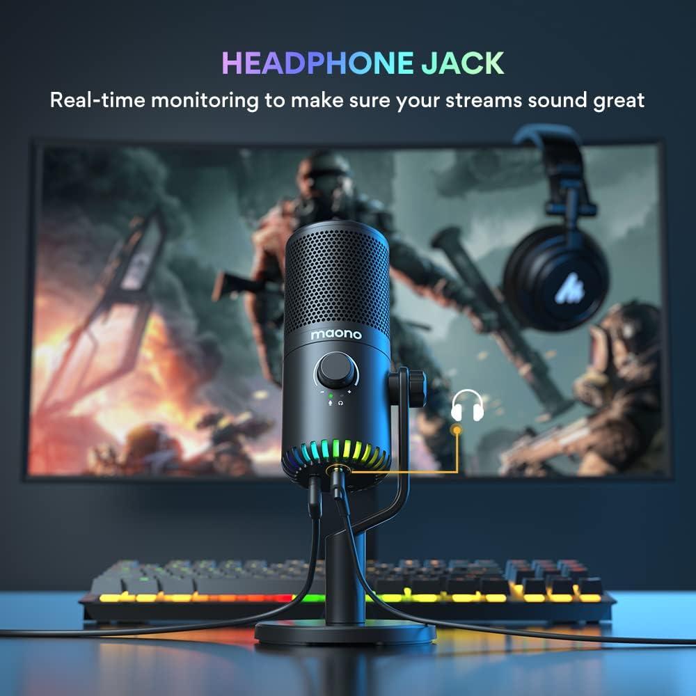 MAONO Gaming USB Microphone for PC, Computer, Mac, Condenser Mic for Recording, Streaming, Podcasts, Twitch, YouTube, Discord, with RGB Lights, Mute, Gain, Volume, Software Adjust, Headphone Output