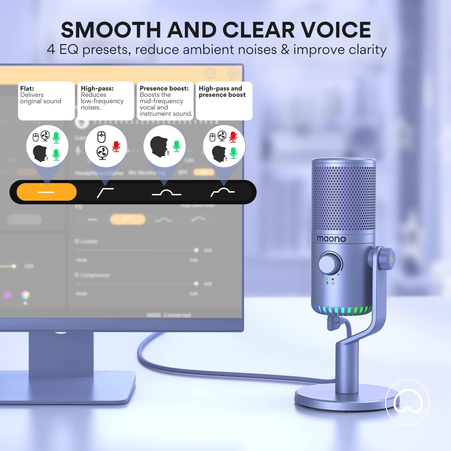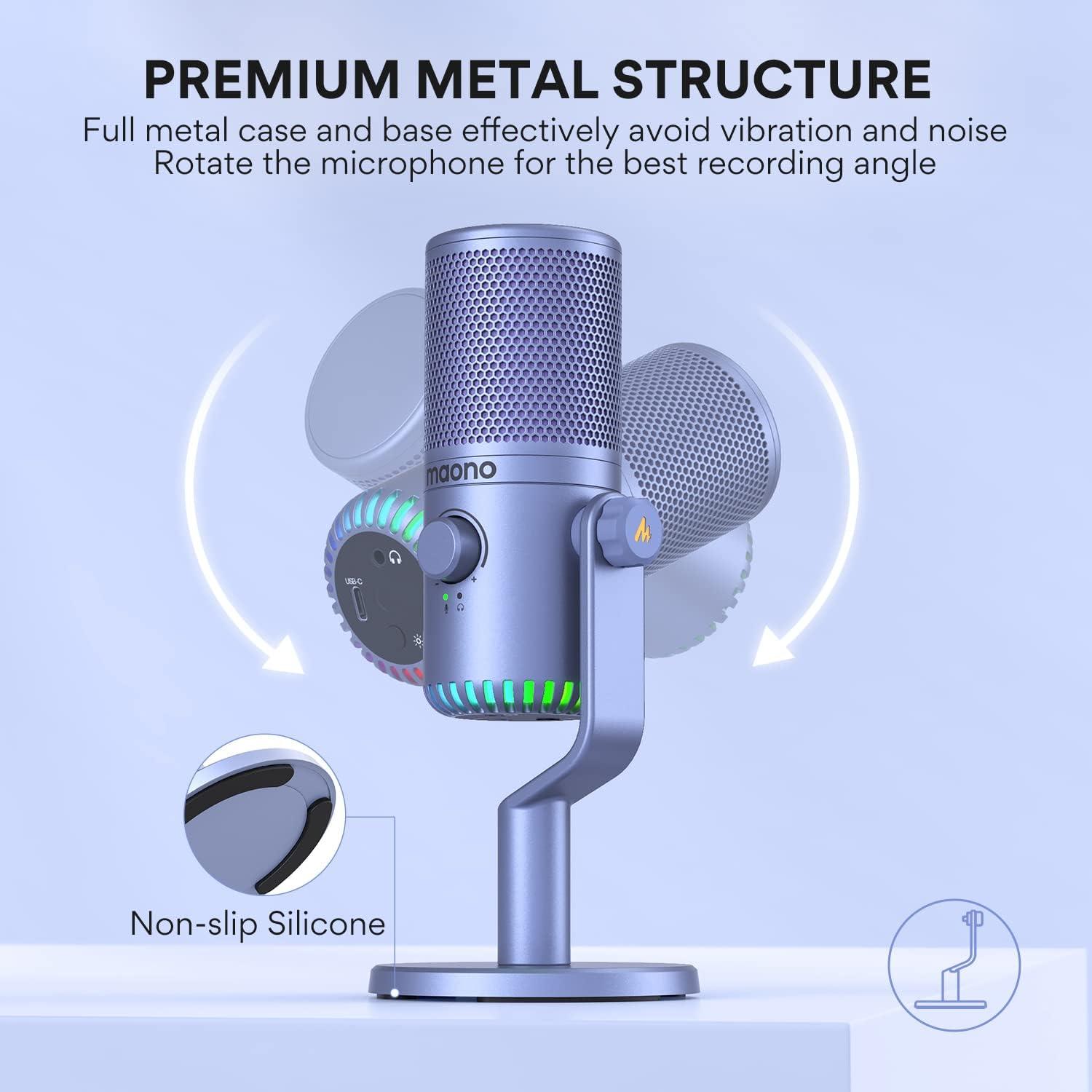 MAONO Gaming USB Microphone, Programmable PC Computer Condenser Mic for Streaming, Podcasting, Recording, Twitch, YouTube, Discord, with RGB Lights, Mute, Gain, Zero Latency Monitoring, Volum, DM30