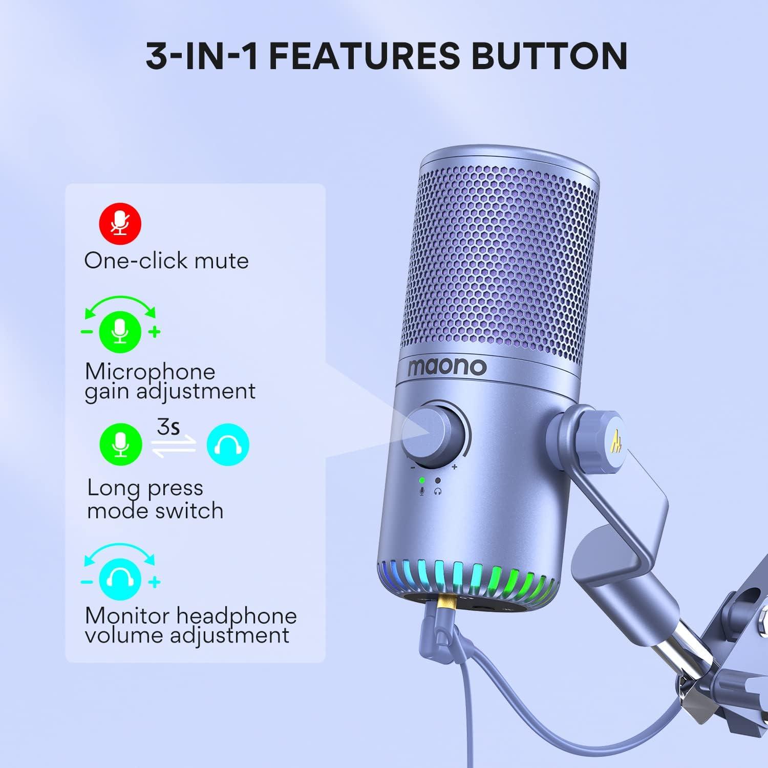 MAONO Gaming USB Microphone, Programmable Condenser Mic with RGB Lights, Mute, Gain, Zero Latency Monitoring, Volume for Streaming, Podcasting, Twitch, YouTube, Computer, PC, PS4, PS5, DM30
