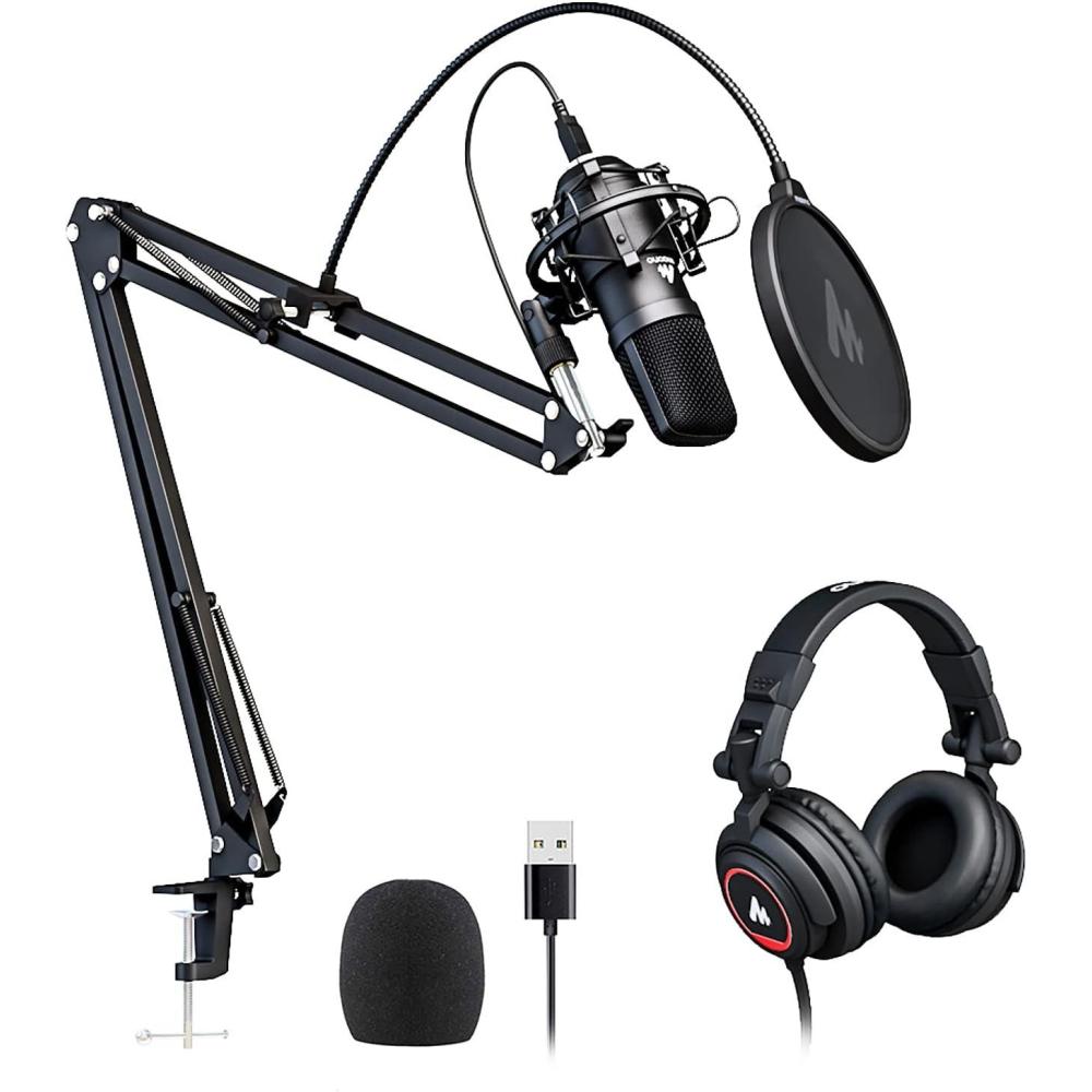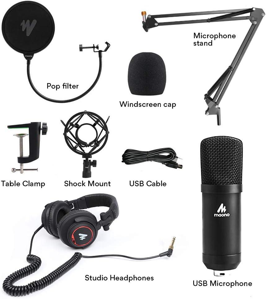 MAONO Microphone with Studio Headphone Set 192kHz/24bit Vocal Condenser Cardioid Podcast Mic Compatible with Mac and Windows, YouTube, Gaming, Live Streaming, Voice-Over (AU-A04H)(AU-A04H)