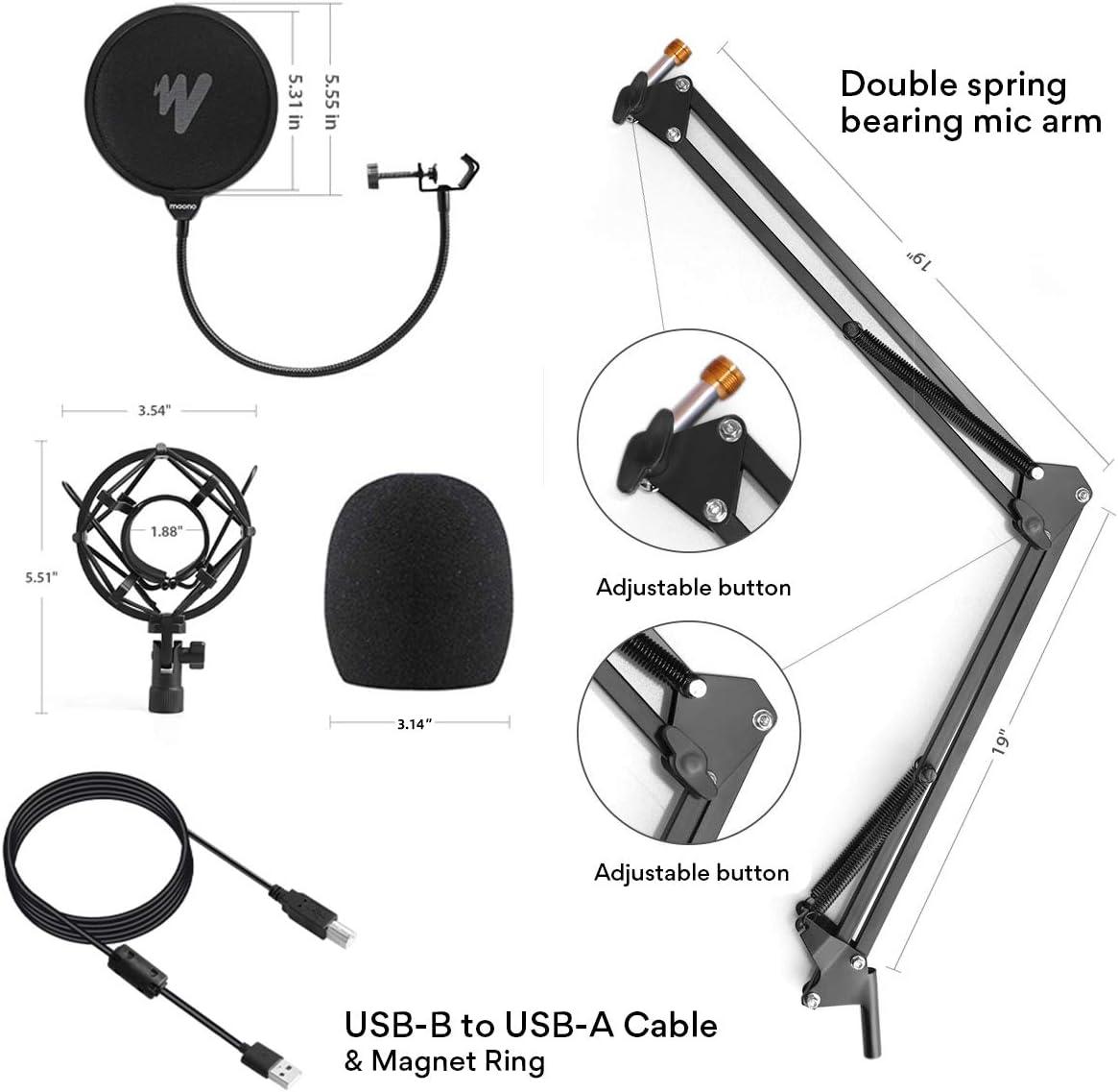 16mm Electret Condenser Transducer & Magnet Ring: With the 16mm electret condenser transducer, the USB microphone can give you a strong bass response. This professional condenser microphone picks up crystal clear audio. The magnet ring, on the USB microphone cable, has a strong anti-interference function, which makes you have a better feel