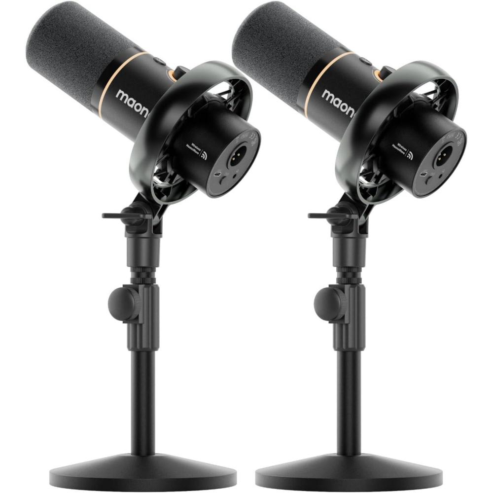 MAONO PD200W Hybrid Wireless Podcast Equipment Bundle for 2, XLR USB Dynamic Microphone Kit with 2 Desktop Stand, Software, Noise Cancellation, for Co-hosted podcast, Vocal Recording, Content Creation(PD200W-Desktop Bundle for 2(Type-C Receiver))