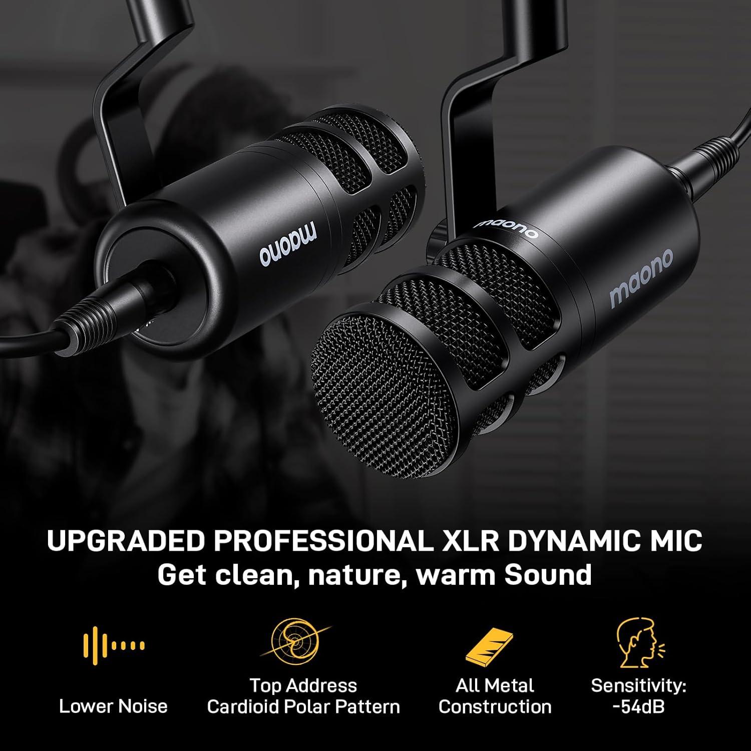 MAONO Podcast Equipment Bundle: Audio Interface mixer with Dual XLR Input for Podcast Streaming – MaonoCaster E2 GEN2+PD100+MH700(E2 Gen2+2 PD100+2 MH700)